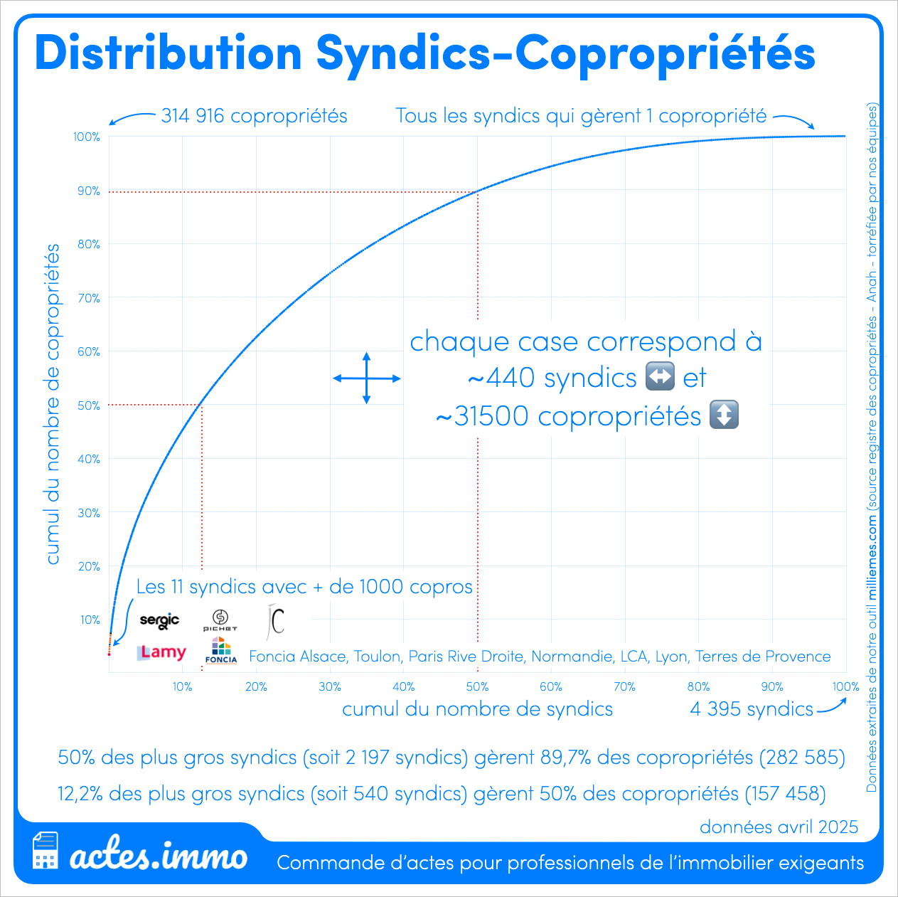 50% des plus gros syndics (2 197) gèrent 89,7% des copropriétés (197 028)
