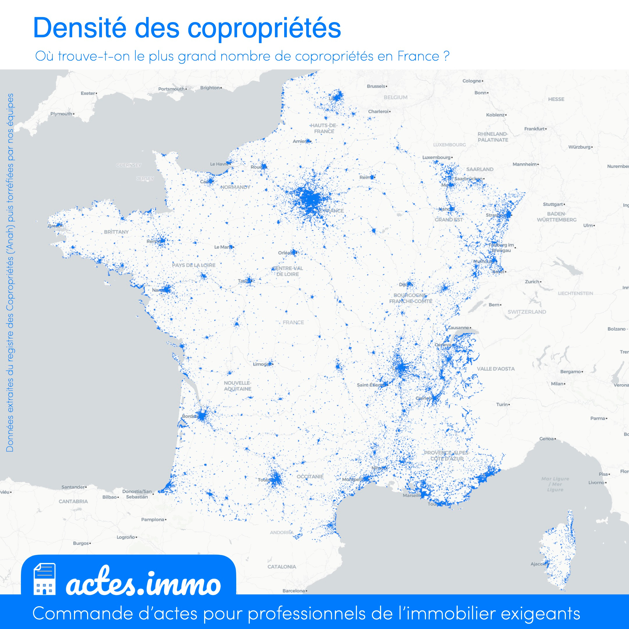 Comme on peut s’y attendre, les grandes agglomérations concentrent un nombre important de copropriétés : Paris et toute l’Île-de-France, Lyon, Toulouse, Bordeaux, Lille, Nantes… Ces zones regroupent une forte population au sein d’un habitat majoritairement collectif.