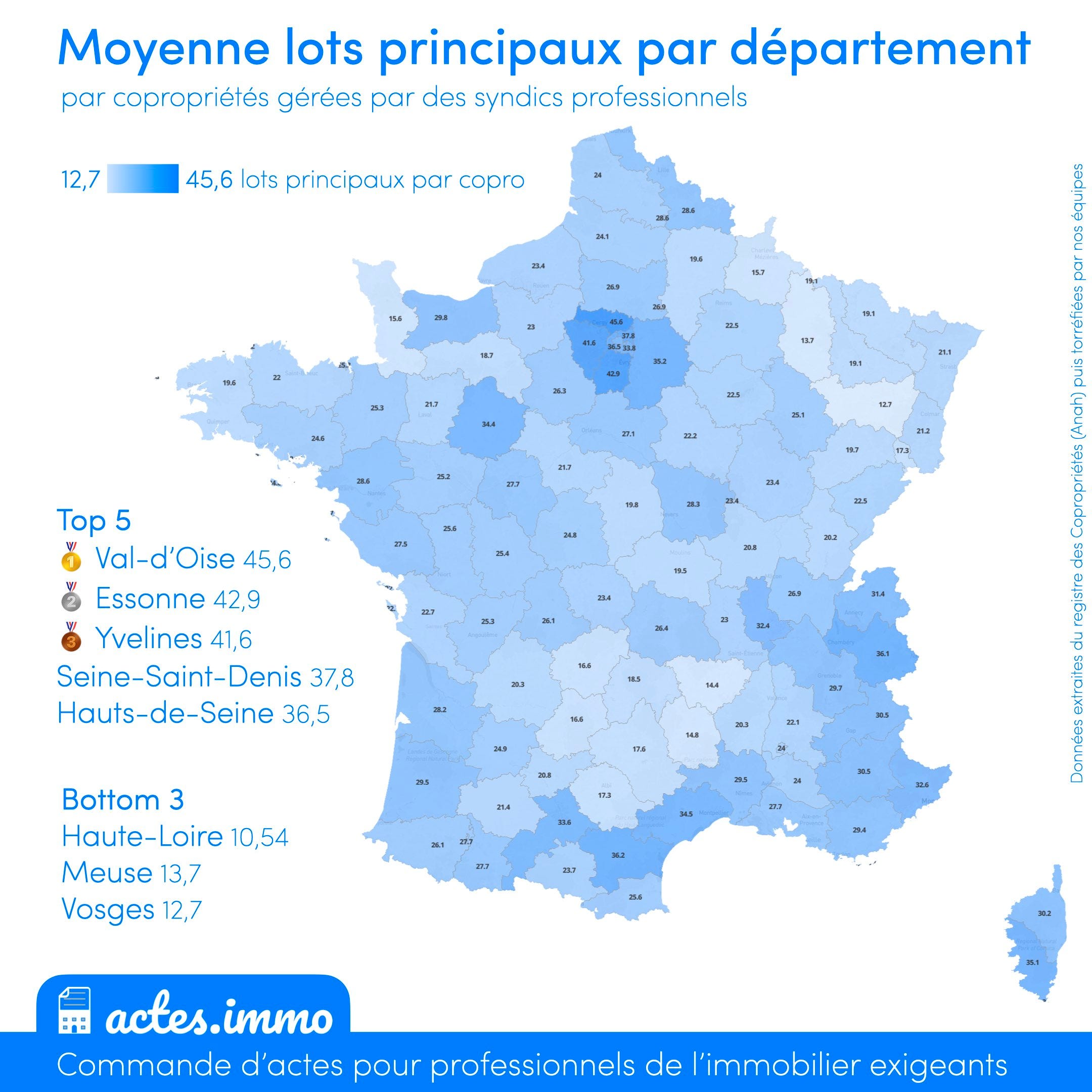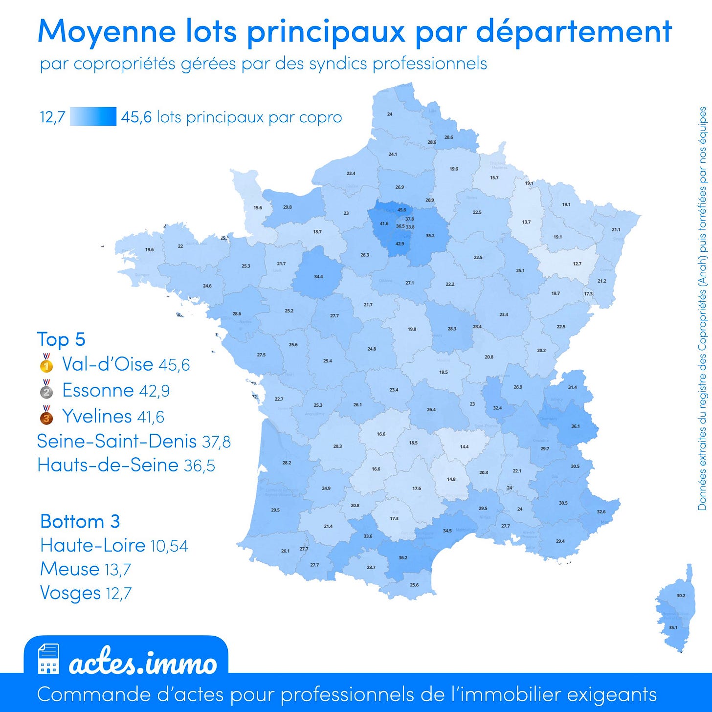 En moyenne, il y a 3,6x plus de lots principaux dans un copropriété en Val-d’Oise que dans les Vosges.