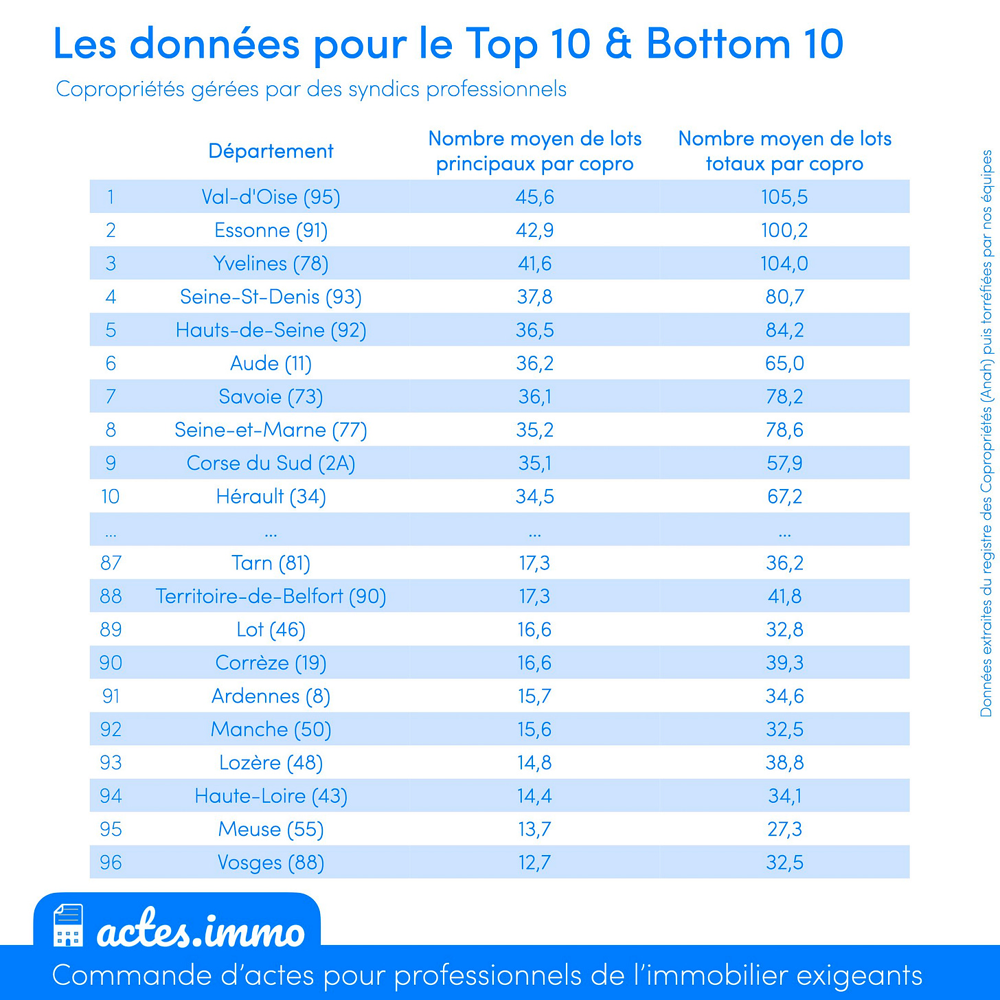 cette édition traite du nombre moyen de lots (principaux et totaux) par copropriété par département